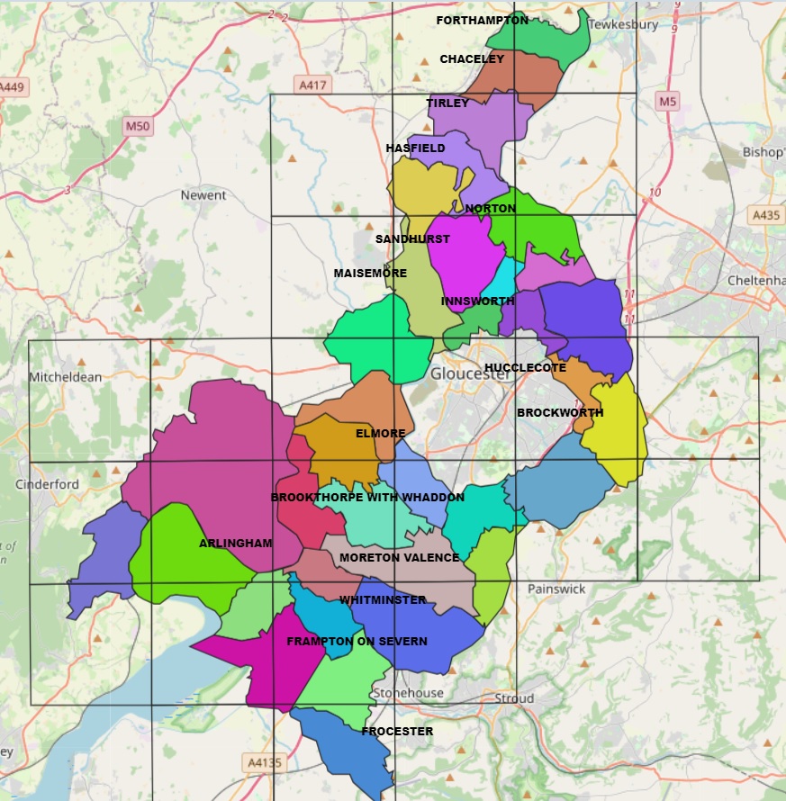 This is an initial Map showing the Parishes in Gloucester Rural District Council as they existed in the period from 1966 to 1974, when this pre 1974 District was abolished by the creation of post 1974 Districts of Forest of Dean, Stroud and Tewkesbury.