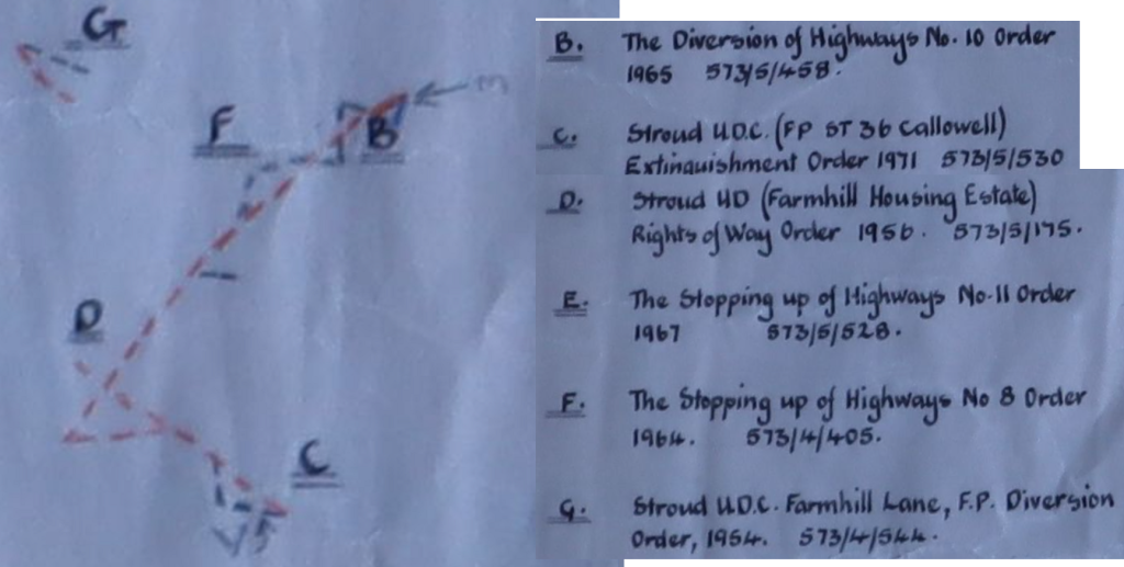 Within the definitive map books are additional overlays on high quality tracing paper on which are shown various orders to divert, extinguish or create new rights of way. I have always assumed that this was confirmation that the Definitive Map had been updated, but I am beginning to doubt this whether all the t’s have been crossed and all the i’s have been dotted