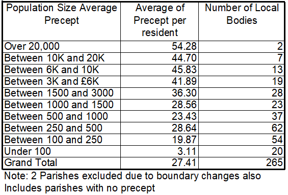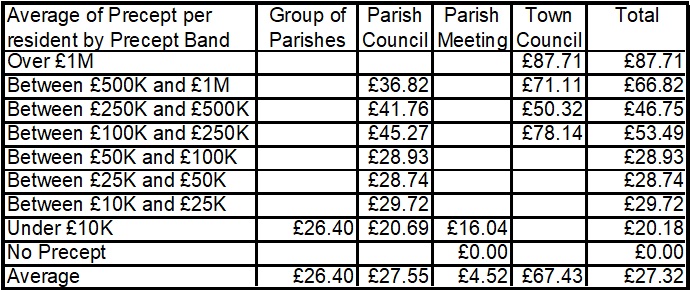 This table looks at the average precept per resident population by band of precept
