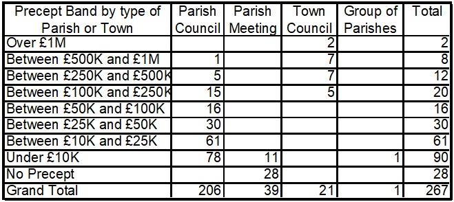 This table has banded the precepts and looked at the type of organisation by size of precept
