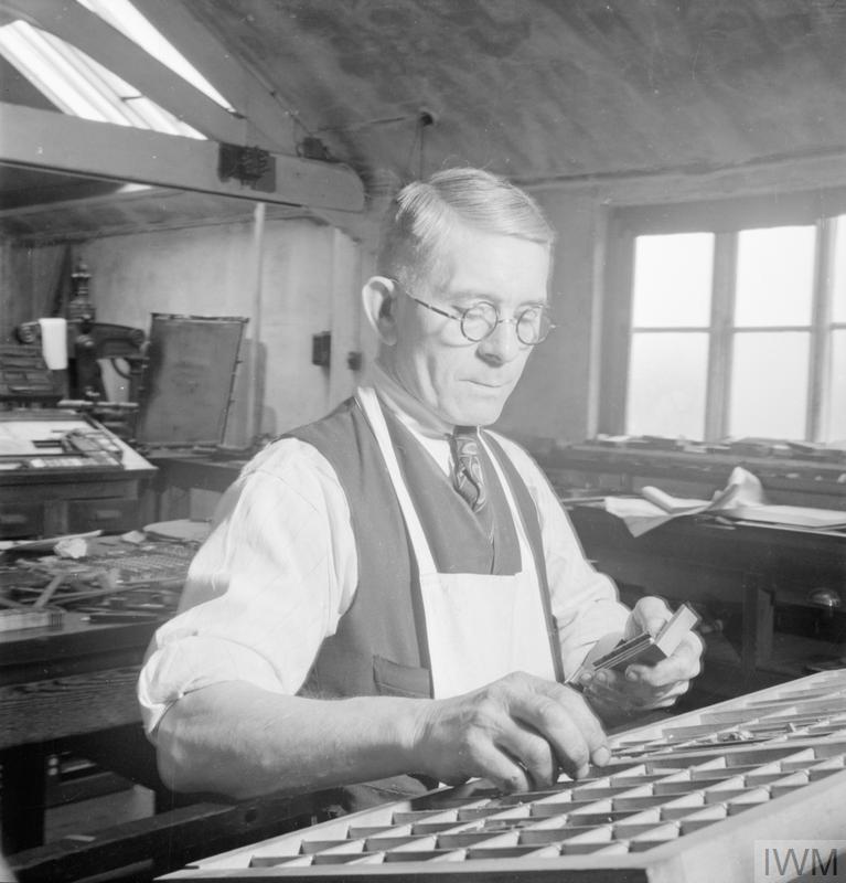 This is a photograph from a Series of Photographs held by the Imperial War Museum showing life in Wotton Under Edge in 1944. Here we meet Mr G F May typesetter for the local newspaper and a parish councillors and “ardent trade unionist”.